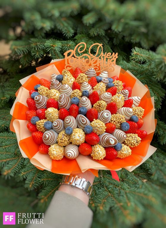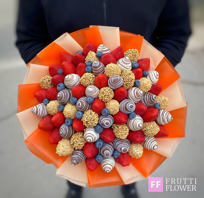 Потрясающий букет из клубники и голубики.