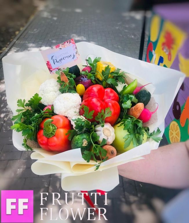 Состав: по Вашему желанию мы можем сделать индивидуальный букет из овощей.