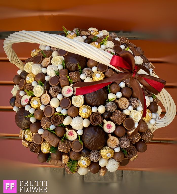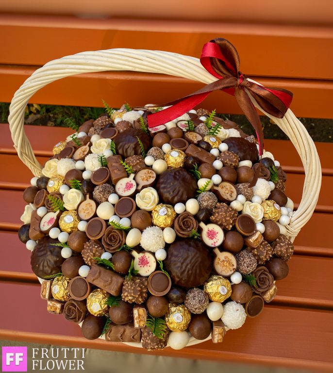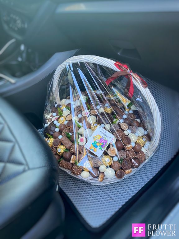 Потрясающая корзина с вкуснейшими конфетами.