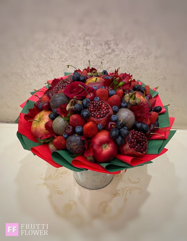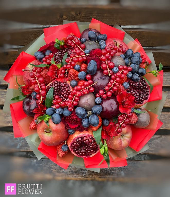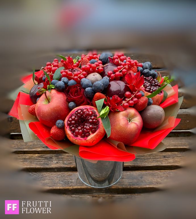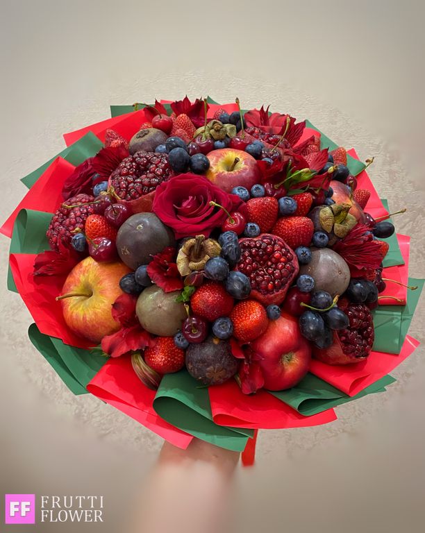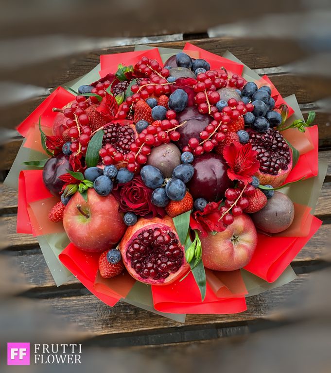 Внимание, в букете использованы сезонные фрукты, если фрукты будут отсутсвовать (из-за сезонности), возможно изменение в наполнении по согласованию с заказчиком.