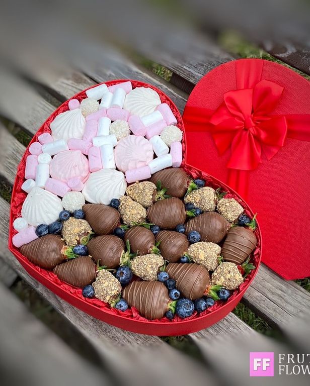 Шикарное наполнение с клубникой в шоколаде и сладостями.