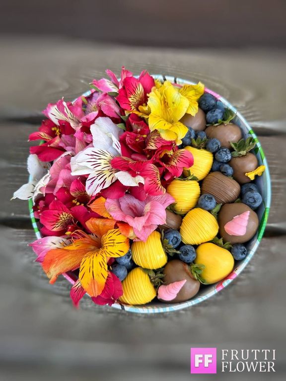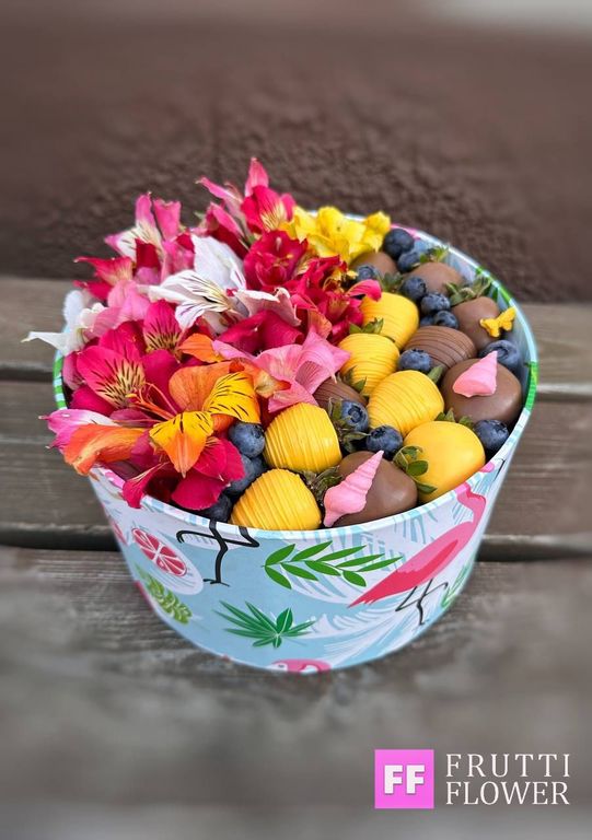 Клубника в шоколаде в два ряда и цветочки, что может быть нужнее девушке!?