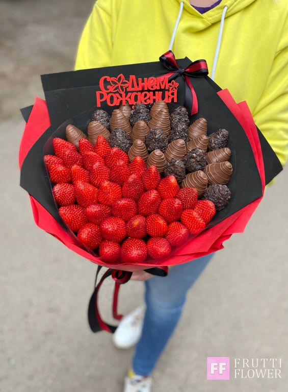 Шикарный букет из свежей клубники и клубники в шоколаде.