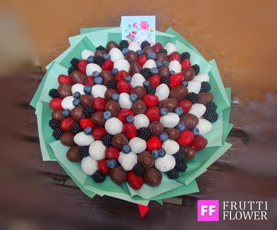 Сочетание свежей клубники, клубники в профессиональноми шоколаде, голубики и еживики сведет с ума не только ароматом, но вкусом и красотой.