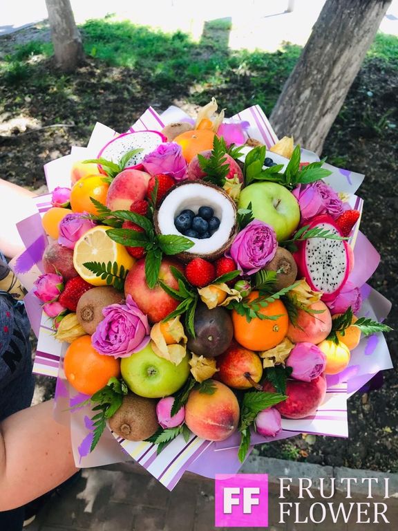 Букет с экзотическими фруктами. Диаметр 40 см.