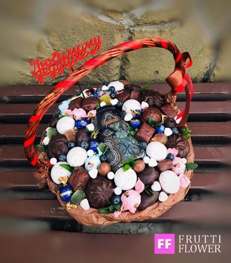 Сладкая корзиночкас чаем подойдет в качестве подарка абсолютно для всех.