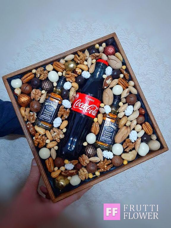Сверху упаковывается в прозрачную слюду с бантиком.