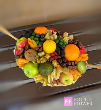 Потрсающее сочетание фруктов и сухофруктов в корзине.