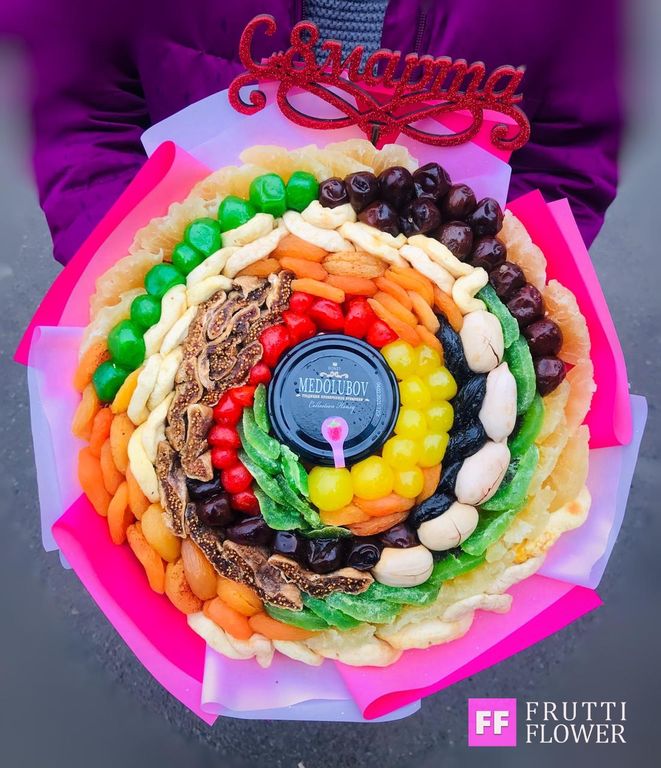 Сочетание орешков, ассорти свежайщих сухофруктов и вкуснейший крем-мед.