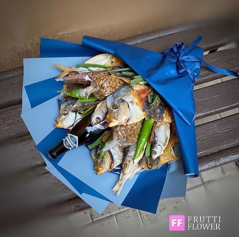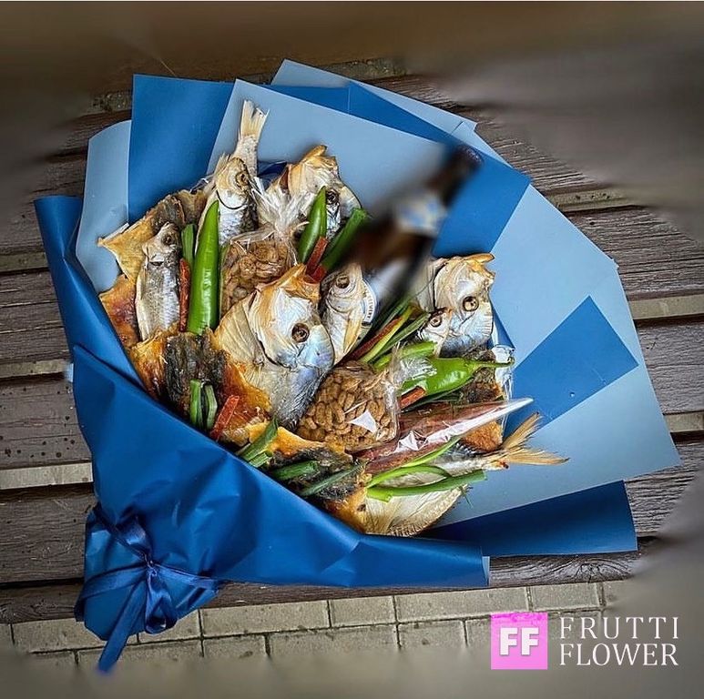 Шикарный букет из ассорти вкусной рыбки.
