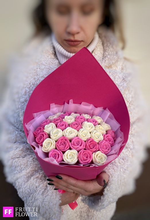 37 шоколадных розочек, сделанных из профессионального шоколада.
