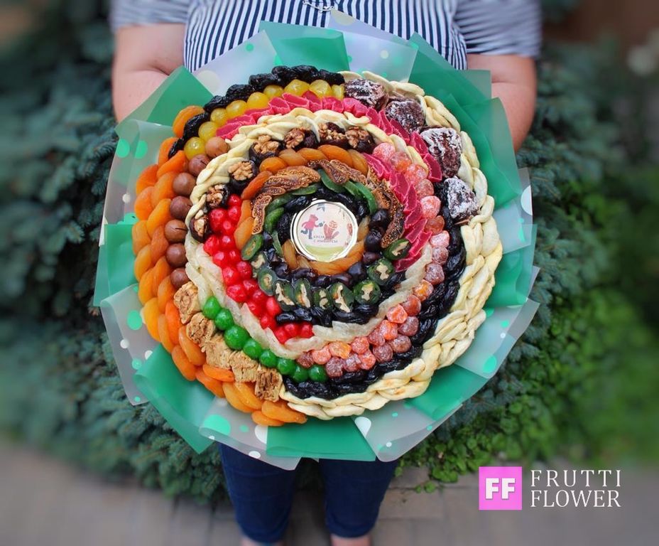 Шикарнейший букет из сухофруктов и крем-меда.