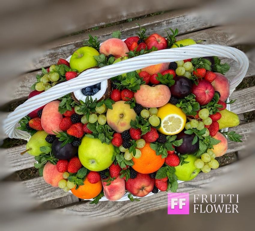 Потрясающая корщина с фруктами и ягодами.