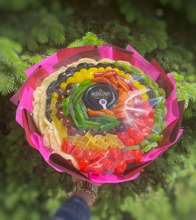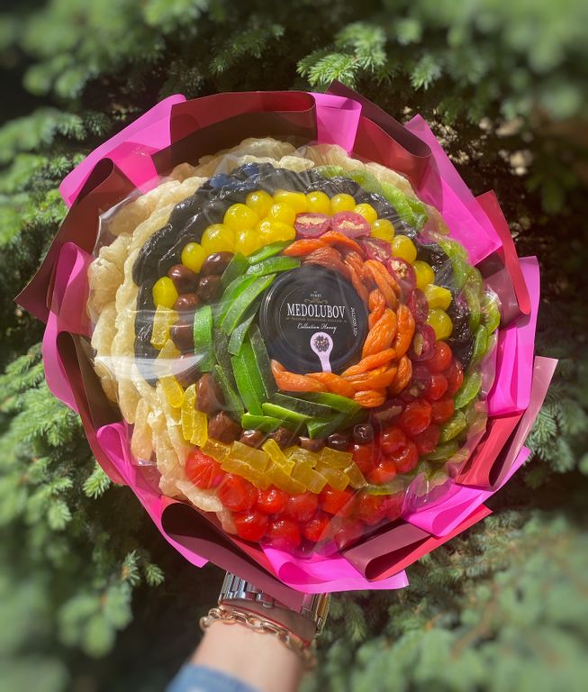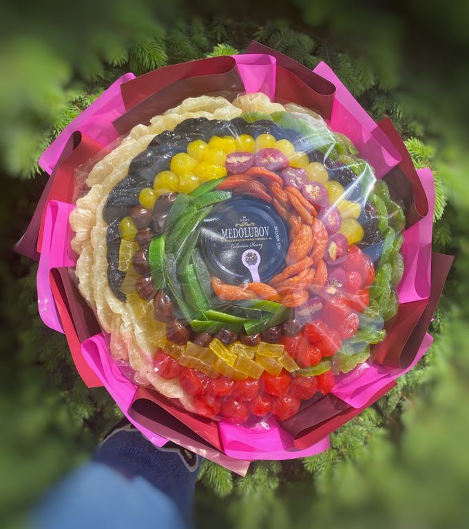 Яркий и красочный букет из сухофруктов.