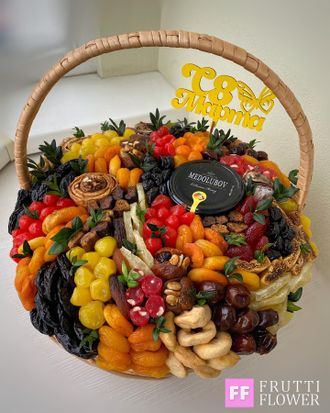 Шикарная большая сухофруктовая корзина диаметром 34 см.