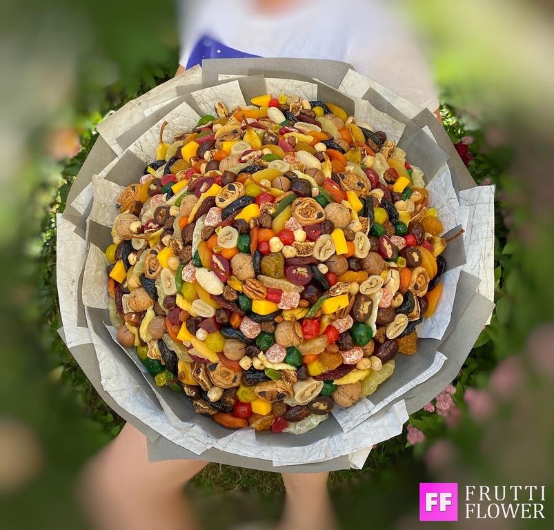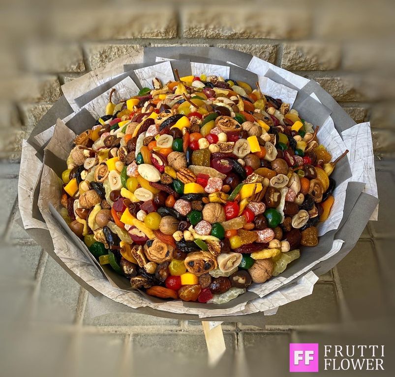 Букет из сухофруктов № 62 10000 руб. Купить в 1 клик В корзину Очень большой и разнообразный сухофруктовый букет. Диаметр: 50 см. Очень большой и разнообразный сухофруктовый букет. Диаметр: 50 см.