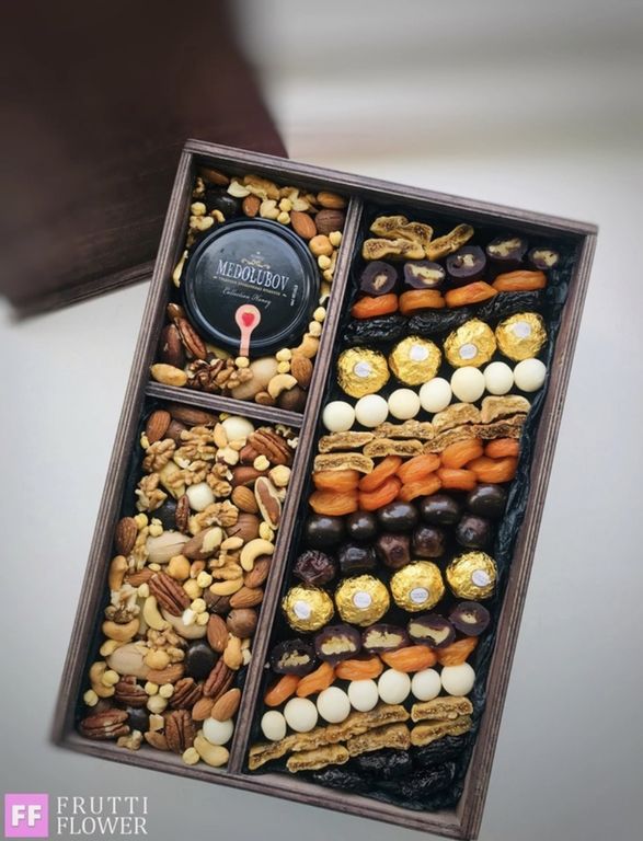 Очень популярный бокс с орехами, сухофруктами и крем-медом.