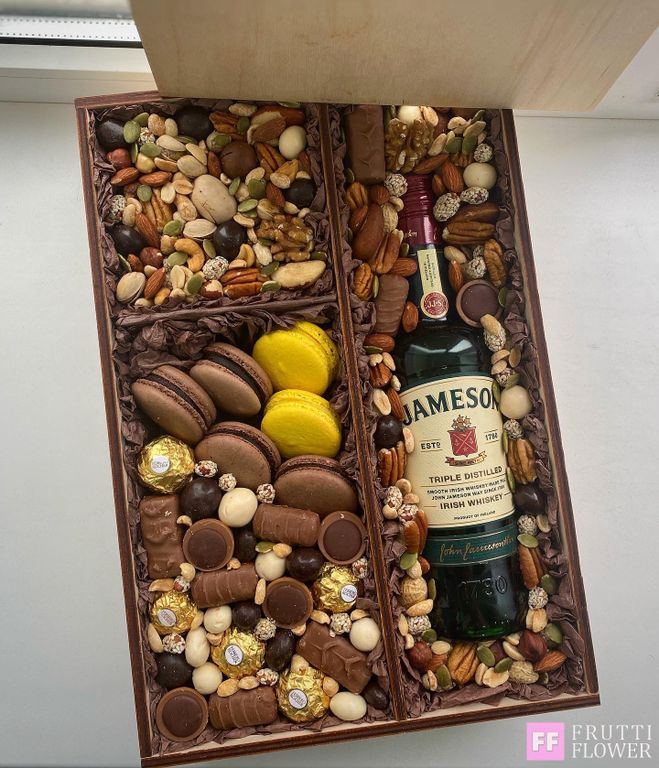 Бокс со сладостями и орехами удивит и порадует любого мужчину.