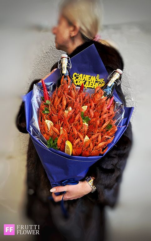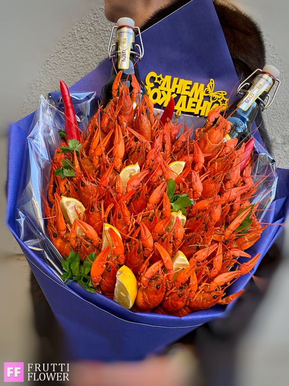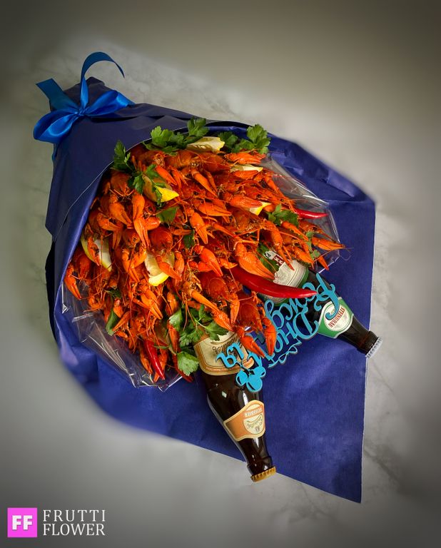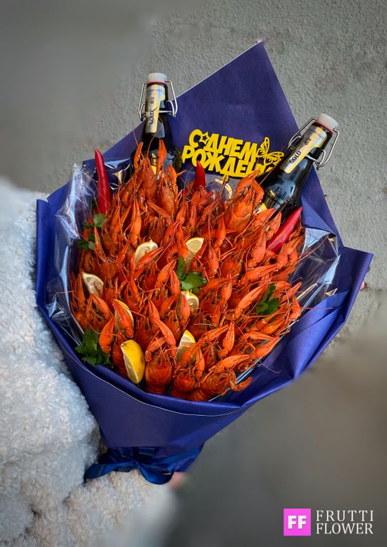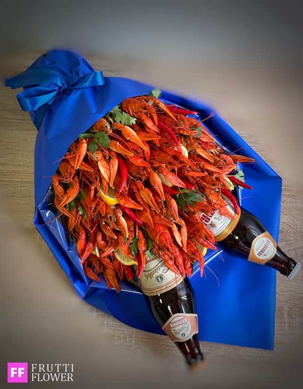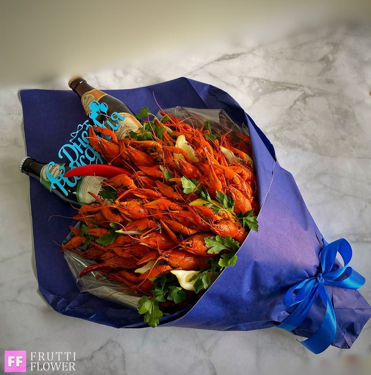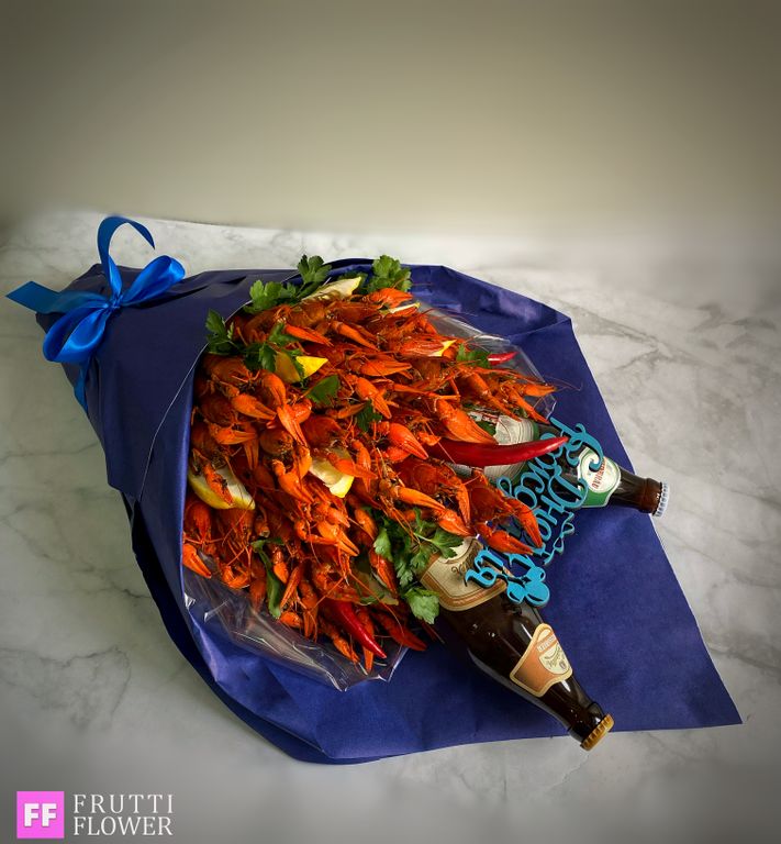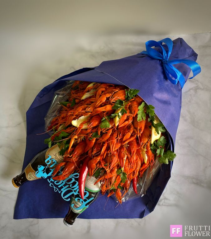 Состав букета: 40 средних вареных раков, декор и 2 пива до 300 руб.