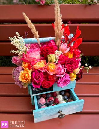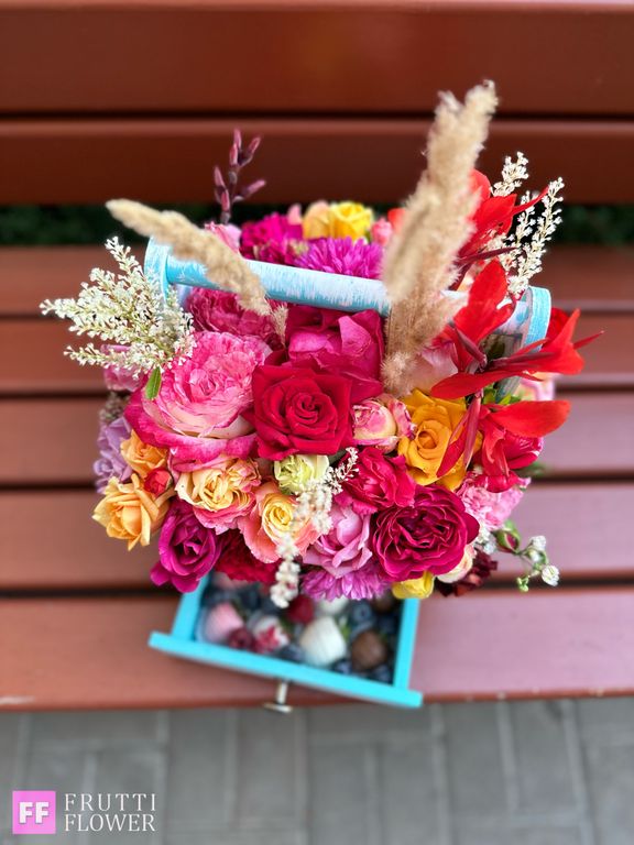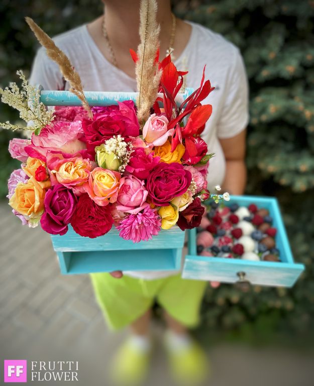 !Композиция собрана в экслюзивном порядке, в единственном экземпляре, повтор до "единого лепестка" невозможен, но будет соблюдена общая тематика, а возможно композиция, которую мы будем собирать именно для Вас получится еще шикарнее!