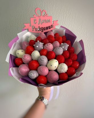Букет из 19 клубник в шоколаде и 23 счежих клубничек.