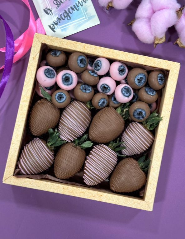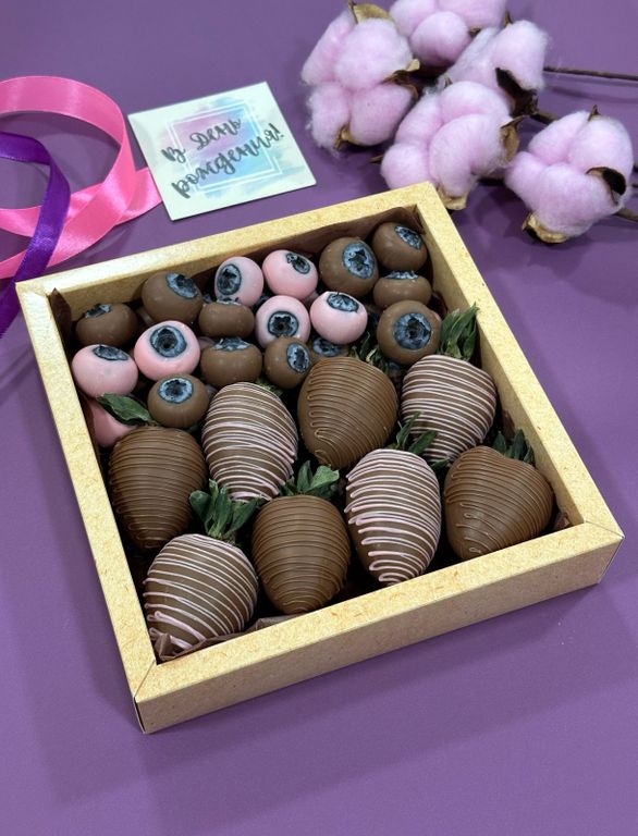 Коробочка с клубникой и голубикой в шоколаде - это абсолютный хит этого сезона.